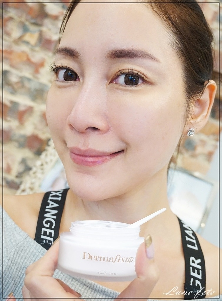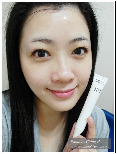Dermafixup德瑪膚K+T雙效嫩白眼霜,眼霜的質地其實滿輕質的,沒有一般眼霜那麼厚重,所以推開以後,肌膚很快就吸收了,