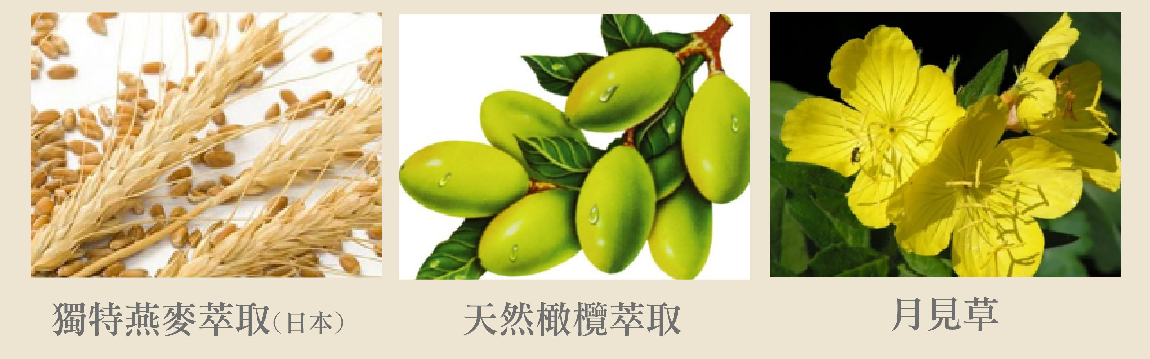 ● 含月見草油:加強滋潤、保濕肌膚,安撫並保護皮膚。